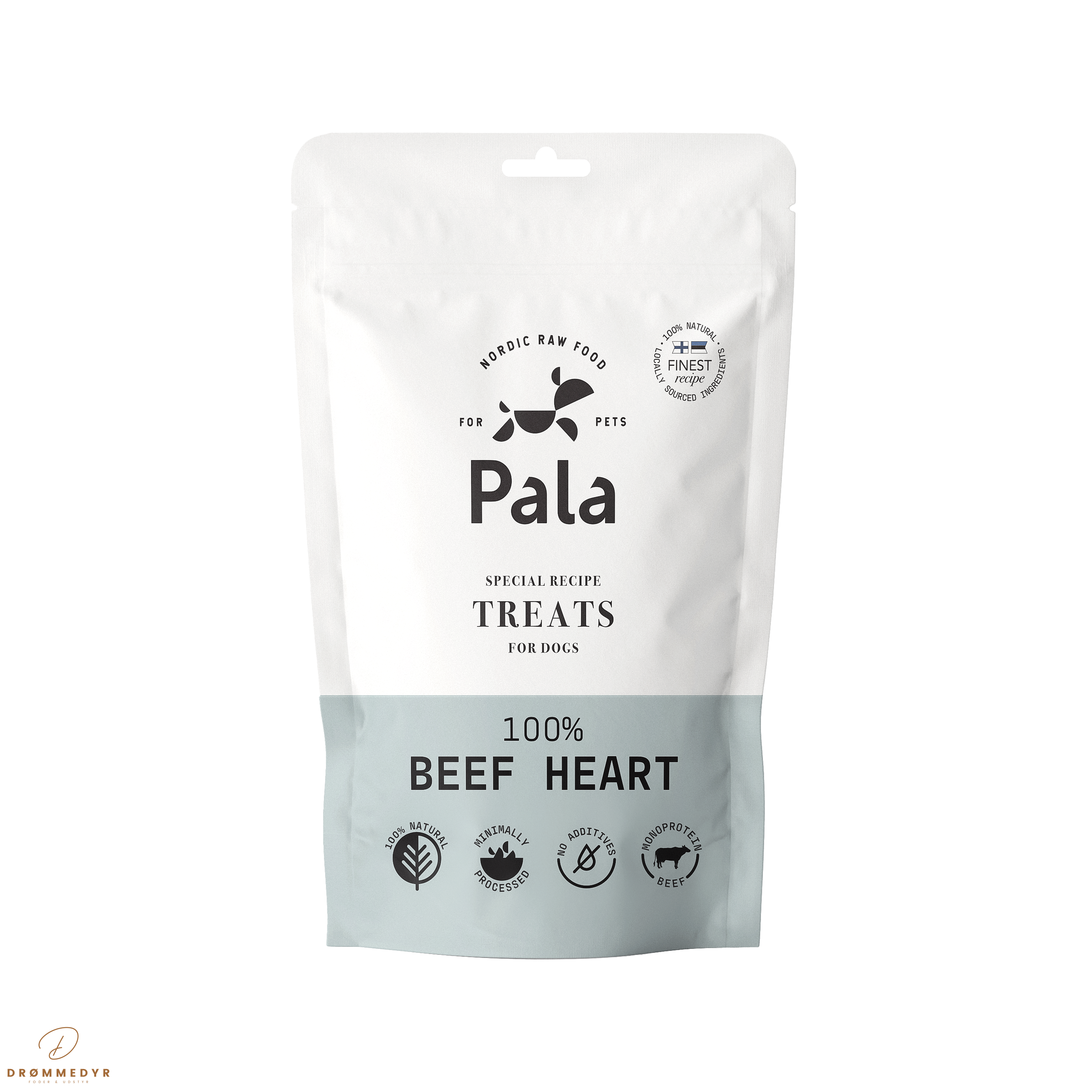 Pala Treats Oksehjerter er en lufttørret, naturlig godbid fremstillet af 100 % oksehjerter. Den skånsomme lufttørring bevarer råvarens naturlige smag og næringsstoffer og giver en fast konsistens med høj smagelighed.