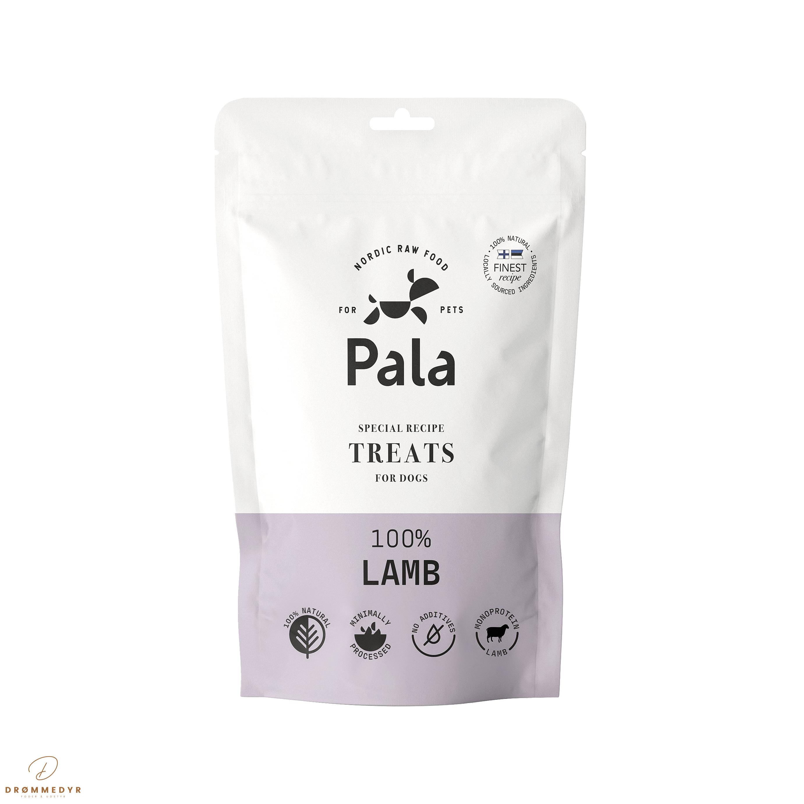 Pala Treats Lam er en lufttørret, naturlig godbid fremstillet af 100 % lam. Den skånsomme lufttørring bevarer råvarens naturlige smag og næringsstoffer og giver en velsmagende godbid med høj accept hos hunde.