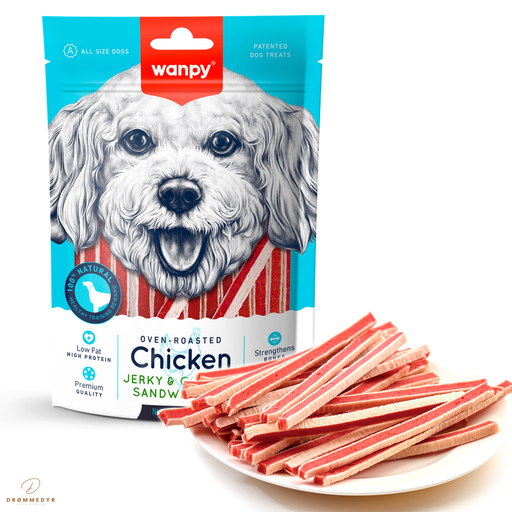 Wanpy Dog Chicken Jerky & Codfish Sandwiches – 100 g