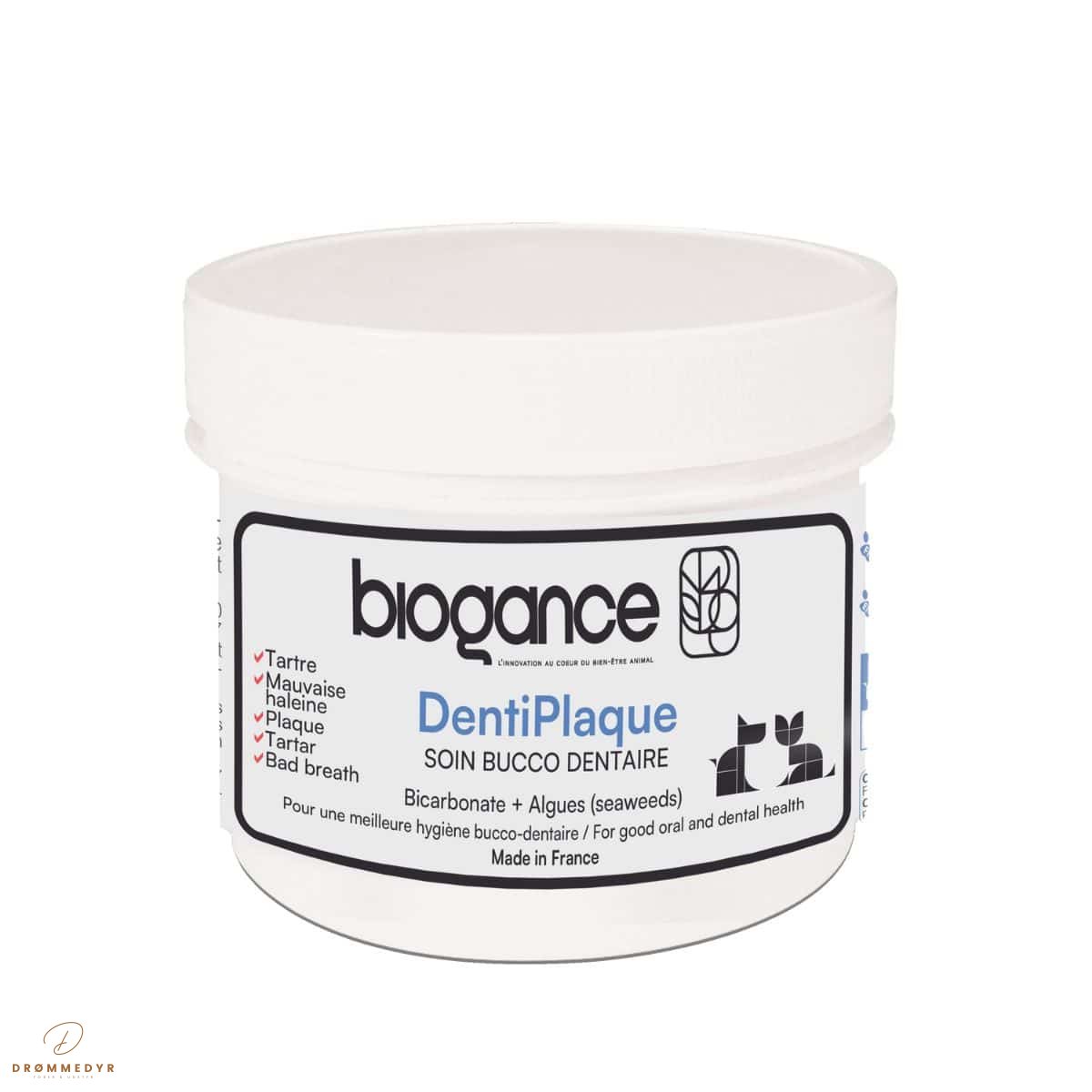 Biogance Dentiplaque Oral Care Powder er et naturligt tandplejepulver til hunde, som hjælper med at reducere plak, tandsten og dårlig ånde. Pulveret virker ved at understøtte en sund mundhygiejne og kan bruges som et nemt supplement til den daglige tandpleje.