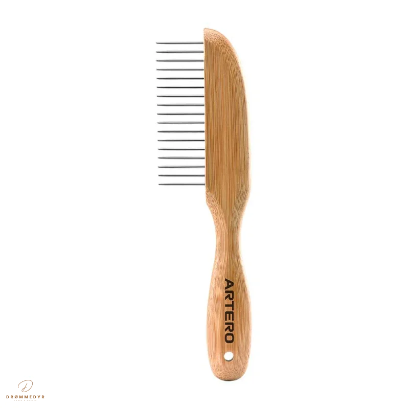 Oplev  ARTERO TANGO - WIDE PIN COMB, det perfekte værktøj til professionel pleje og styling af tyk pels . Denne brede tandkam er designet til at glide gennem både vådt og tørt hår uden at beskadige eller trække, hvilket gør den til et godt  redskab i hver hjem eller såvel som i salon.