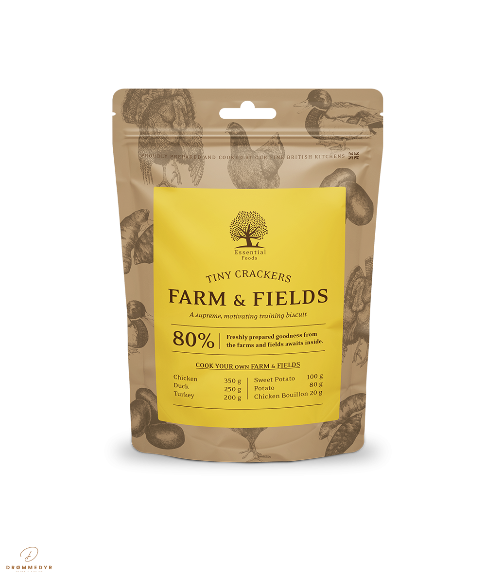 Små, sprøde godbidder med masser af smag – perfekte som træningsgodbidder eller små belønninger i hverdagen. ESSENTIAL FARM & FIELDS Tiny Crackers er lavet med nøje udvalgte ingredienser og har en størrelse, der gør dem ideelle til hyppig belønning uden at overfodre.