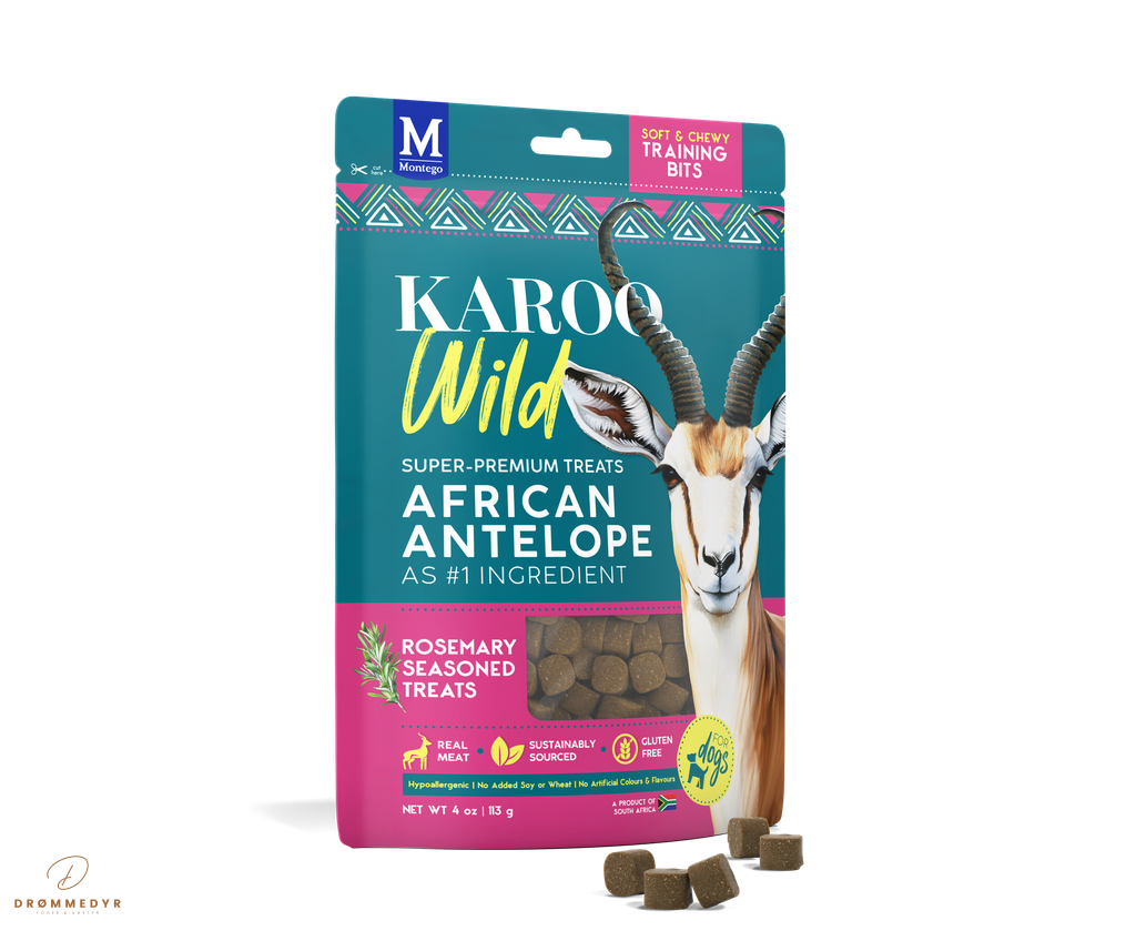 Karoo Wild hundegodbidder er lavet af antilopekød fra Afrika. En godbid som har et lavt fedtindhold og et højt proteinindhold samt en karakteristisk vildtsmag, som er uimodståelig for hunde.