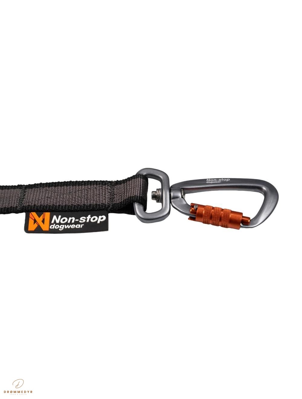 Touring Bungee line af mærket Non-Stop. Elastisk hundesnor, der er ideel til vandreture, men som også fungerer godt til andre aktiviteter. Linen er delvist elastisk for at blødgøre pludselige træk, når man går tur eller laver andre aktiviteter med hunden. Dette gør oplevelsen mere behagelig for både hund og hundefører. Alligevel tilbyder Touring-bungee linen god kontakt med hunden.
