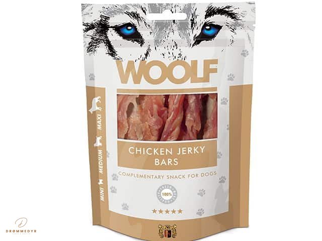 Naturlige, sprøde kødbarer til din hund! Woolf Chicken Jerky Bars er lavet af mørt kyllingekød, nænsomt tørret for at bevare både smag og næringsstoffer.