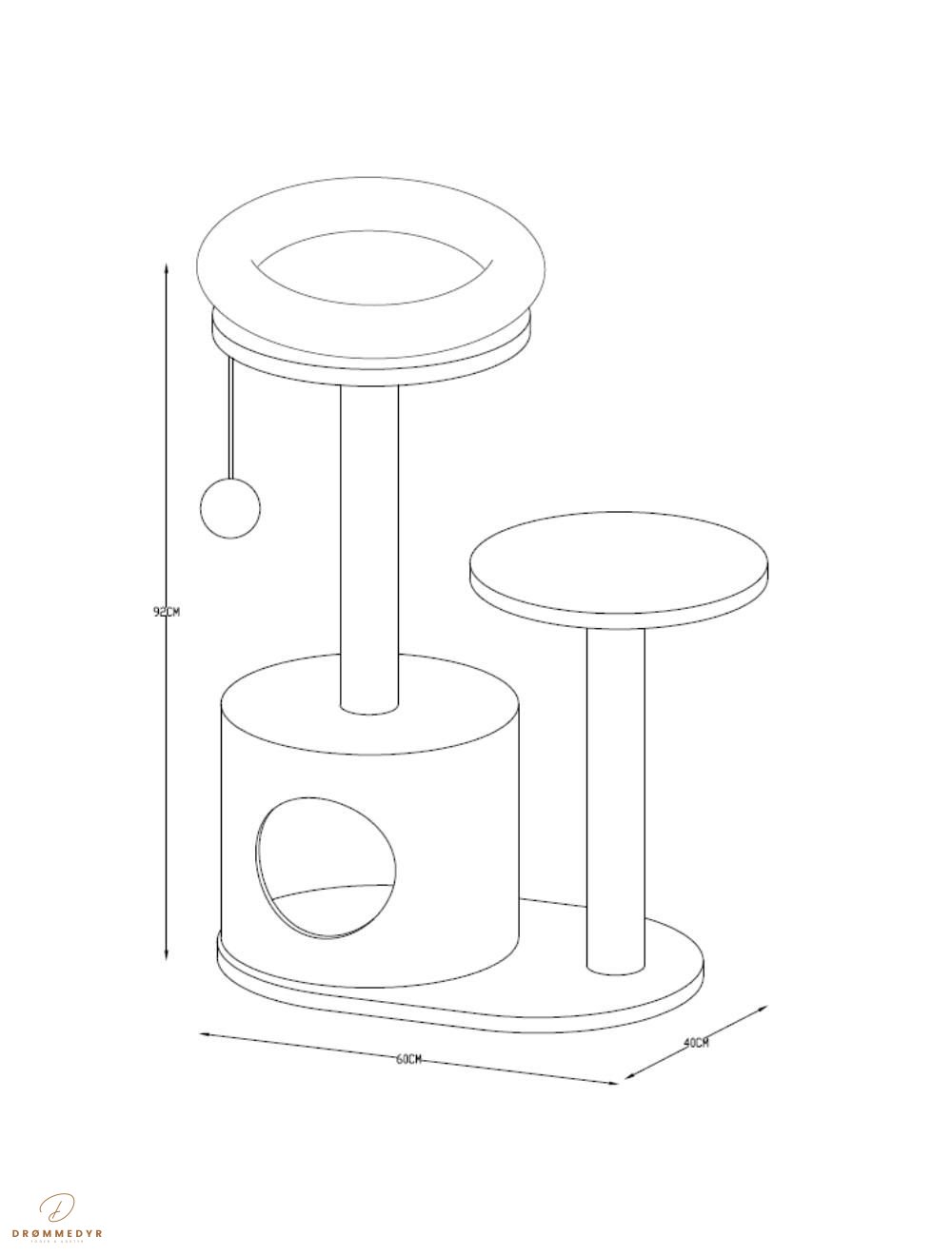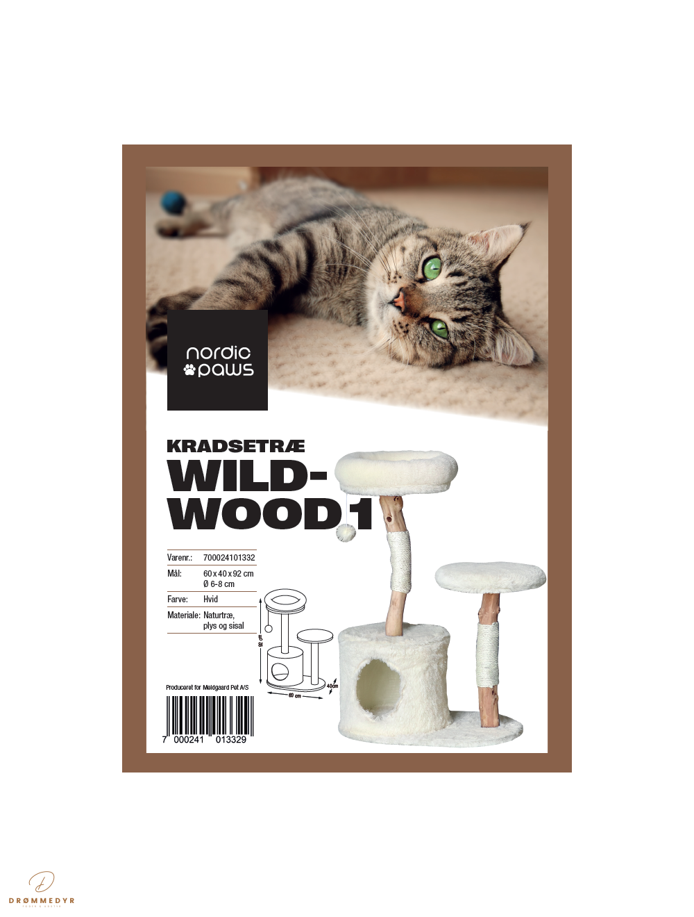 Wildwood 1 kradsetræ af mærket Nordic Paws. Flot kradsetræ med hule, platforme og naturlige stolper med sisalreb.