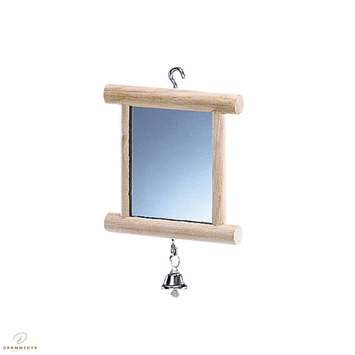 Spejlet kan hænges op i buret, så fuglen let kan interagere med det fra begge sider. Det er et enkelt, men effektivt tilbehør, der giver variation og bidrager til trivsel.