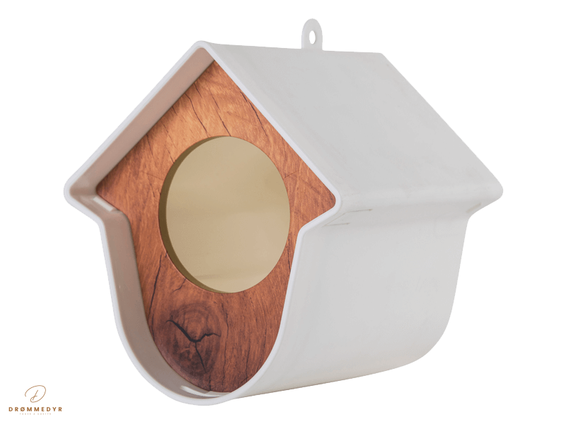 Mål 15 x 13 x 17cm Evie er et dejligt lille hus til vores syngende venner, vildfuglene. De har brug for et lækkert måltid hele året rundt, især i de kolde måneder. Evie er lavet specielt til de glas med jordnøddesmør/peanutbutter til fugle eller til de fedtstænger (Ligesom fedtkugler i lange) men også velegnet til fedtkugler, jordnødder eller stykker af frugt. Uanset hvad du kommer i Evie, skal du blot placere det i med den let aftagelige front. Du kan nemt hænge Evie op, med det medfølgende velcrobånd, eller skrue den på en nedløbsrør, et træ, et hegn eller en væg