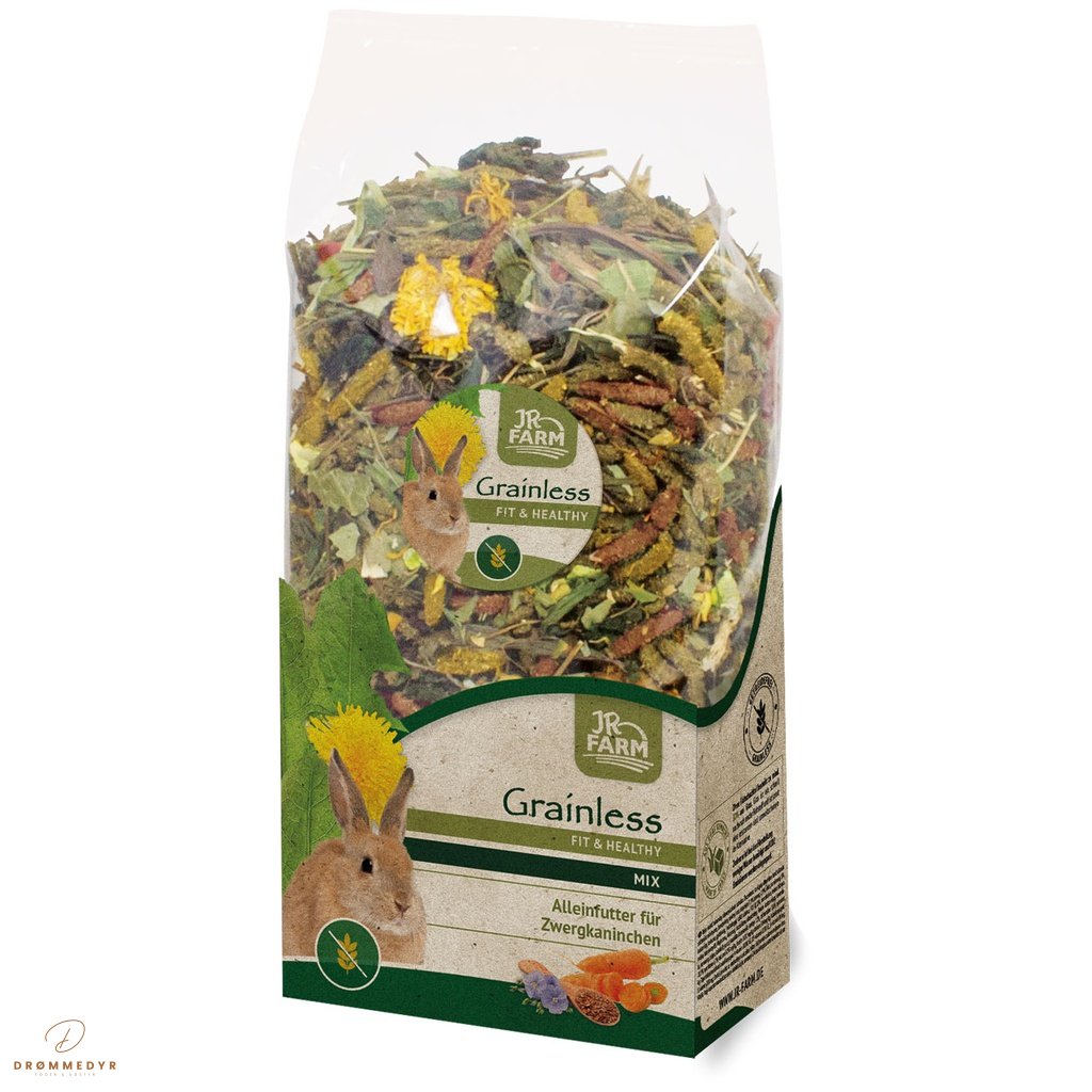 JR Farm Grainless Health Mix er et naturligt og kornfrit fuldfoder, særligt udviklet til dværgkaniner. Blandingen består af aromatiske græsser, sunde urter, grøntsager og blomster, som giver en varieret og fiberrig kost, der understøtter både fordøjelse og tandpleje.